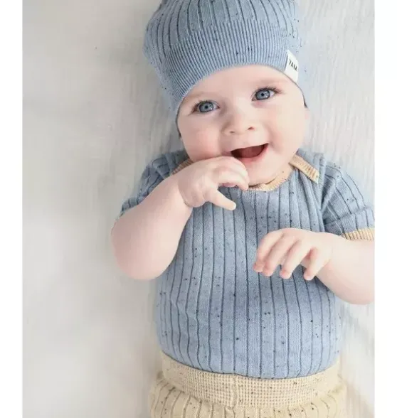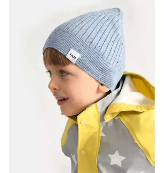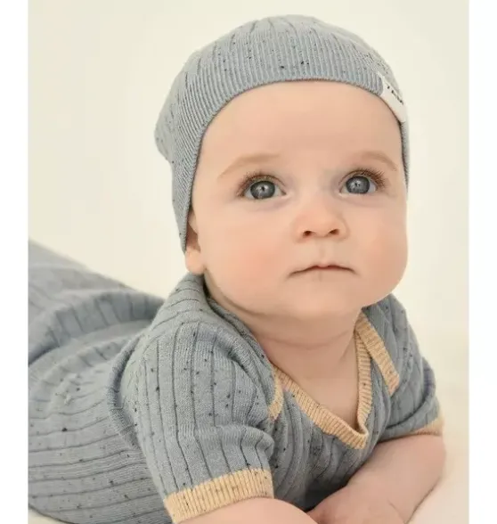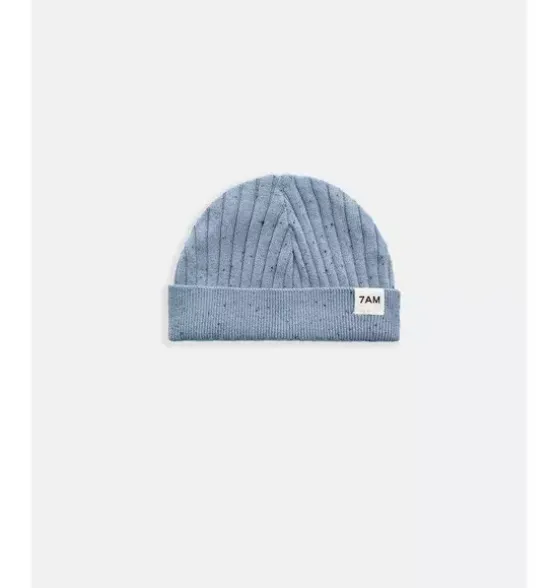 - HUG ME COMFYWEARThe reinvented retro ribbed knitThis lightweight beanie is the easiest accessory for all mild seasons. Crafted with responsibly sourced BCI cotton, this beanie is ultra soft and breathable, featuring a speckled ribbed knit for the cutest retro look. The Hug Me Beanie is the perfect hospital hat for newborns and sizes up until 4 years old. It’s the classic beanie you’ve been waiting for.MAKE IT A SET with the matching Hug Me outfit or mix and match with fuzzy. Where every stitch is a HUG for your little ones!A stitch, a story…Halfway between a T-shirt and an undergarment, the knitted under armor made its way into our grandfathers’ wardrobes in the Far West. This revolutionary garment freed the body and transcended eras our mothers begun to wear it without a care or even a bra, tucked into bell-bottom jeans what was meant to never be seen by daylight, became mainstream, embracing our shapes, our flaws, and our ambitions. But who, today, would wear it better than a baby?These darling, classic, unisex, and timeless knitted (but never overdone) garments, fit close to the body like a hug. Reinvented for our children, this collection incorporates a weathered ribbed knit, ensuring optimal comfort and elasticity faithful to the Comfywear spirit of the 7AM Maison designs. Whether Hug Me is worn indoors or outdoors; alone or layered under other clothes, your little ones will love to go on adventures dressed in the softest knit. Beneath the London sky, the Haussmannian rooftops, or the Alpine massifs, the Hug Me knits come in retro and with 7AM’s touch: simple cuts and speckled tones.