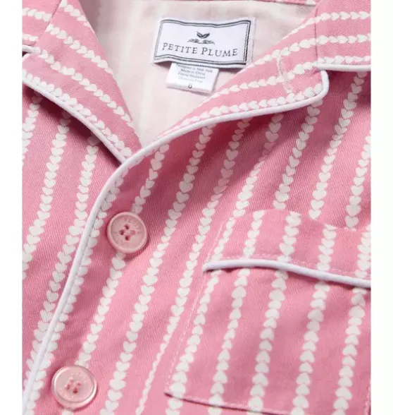 - Put a sweet spin on classic stripes with the heart-filled Love Lines design. This classic pajama set is accented with piping and finished with buttons.The sleepwear is made from the finest quality yarn-dyed cotton and blended with just enough inherently flame retardant fiber to allow it to pass strict CPSC flame retardant laws without using harmful chemicals. The fabric is brushed for added softness, making the sleepwear feel absolutely luxurious, getting cozier after each wash.