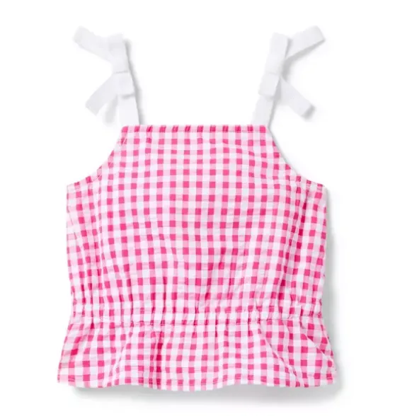- Every outfit is squared away with our gingham top. In a peplum silhouette with bow straps.