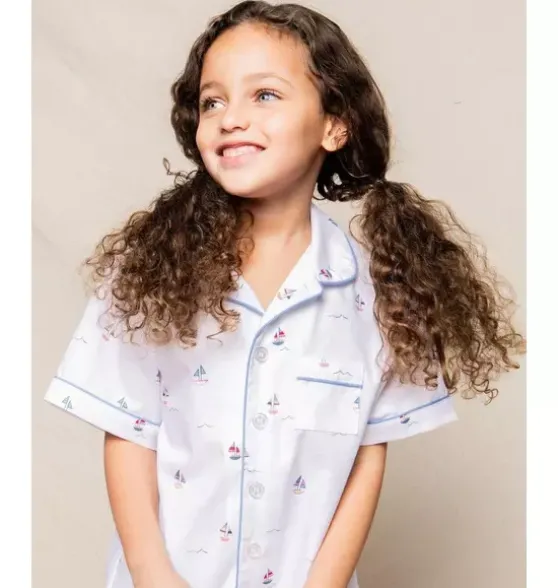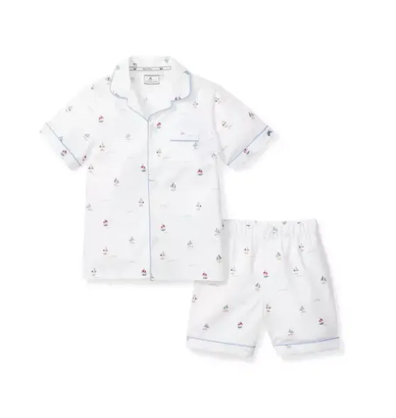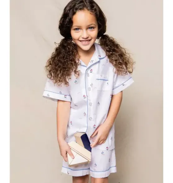 - Bateau’s colorful toy boats bobbing in the sun speak of playfulness and simplicity. Like children scattered down the sand under happy beach umbrellas. This Classic Short Set is accented with, contrast piping and finished with pearl buttons.The sleepwear is made from the finest quality cotton and blended with just enough inherently flame retardant fiber to allow it to pass strict CPSC flame retardant laws without using harmful chemicals. The fabric is brushed for added softness, making the sleepwear feel absolutely luxurious, getting cozier after each wash.In our luxurious sleepwear, your little one will be tucked in love and off to dreamland. Bonne nuit.