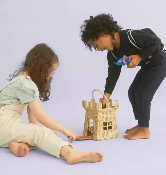 - Our Rattan Castle Bag has been making fairytales come true since 2022! This 100% handwoven Castle is complete with turrets, a handle and a contrast rattan drawbridge that opens and closes with a little wooden button and loop for all those Prince and Princesses that might just visit! Made with little hands in mind, this castle is lightweight and easy to carry wherever the day and their imagination may go! This magical Castle Bag also features a handy open top for easy access to treasures and all things precious. Made for Holdie™ Folk play but perfect for storage too, our Rattan Castle Bag is waiting for you.