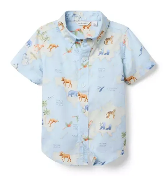 - Our lightweight cotton poplin shirt is made for sunny days. With an animal map print and tailored details like collar point buttons.
