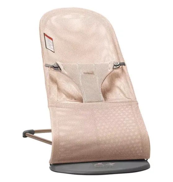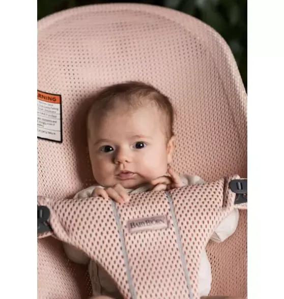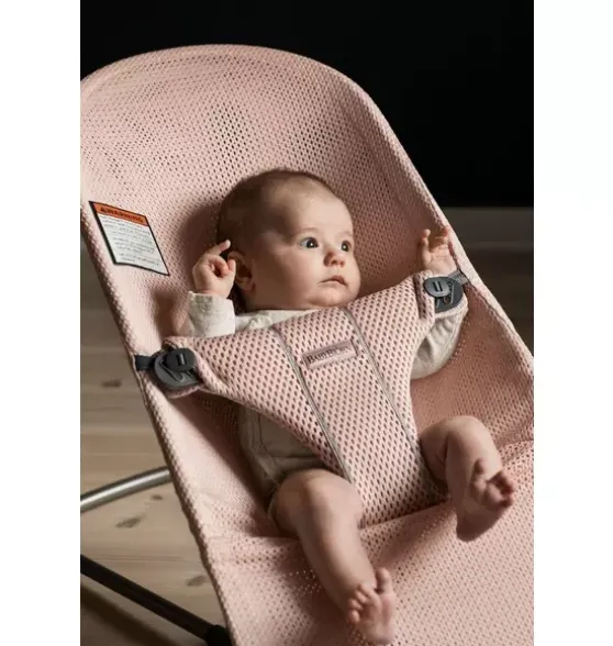 - BabyBjorn Bouncer Bliss is our classic, award-winning baby bouncer in a new design. Bouncer Bliss is available in a plush cotton quilting and soft, child-friendly mesh – two extra cozy fabrics for a soft start to life. It s gives your baby a cozy place to rest and play. The ergonomically shaped seat provides proper support to your baby’s back, neck and head. The gentle, natural bouncing motion is controlled by your or your baby’s movements. No batteries or cords are needed, and the baby bouncer makes no noise. Bouncer Bliss is lightweight and portable, allowing you to safely keep your little one close when you need to shower, make dinner or simply need to use both of your hands. Bouncer Bliss has three different positions and folds completely flat when you’re on the go. The fabric is easy to remove and machine washable. Suitable for children aged 0-2 years.