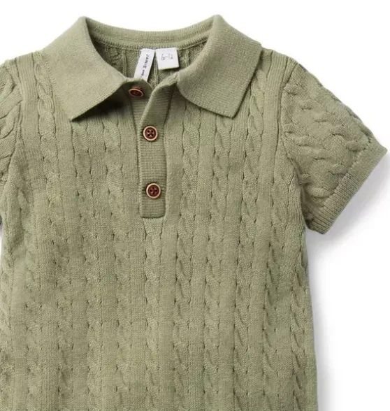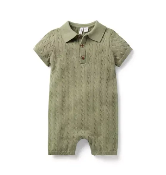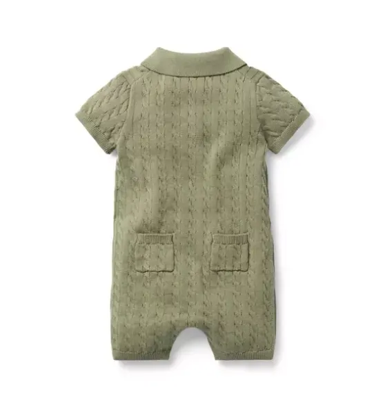 - Cozy cable knit makes this collared romper an instant favorite. With ribbed details and little back pockets too.