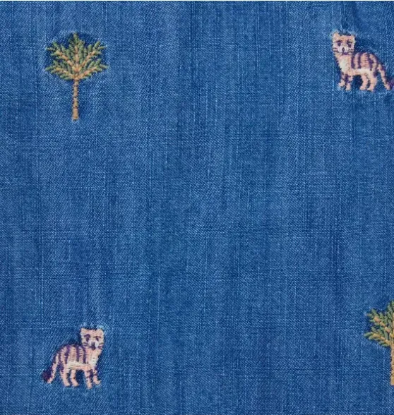 - We’re wild about this overall in soft chambray. Featuring allover embroidered tigers and palm trees, it pairs perfectly with all of baby’s favorites.