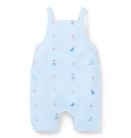 - An overall favorite for baby’s first sunny adventures. Featuring an allover nautical dog print and a little bib pocket too.