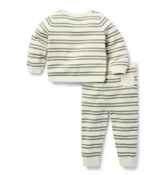- Our soft, pure cotton set is perfect for keeping baby cozy at home or on the go. Featuring allover stripes, a bow detail at the waist and a little back pocket too.