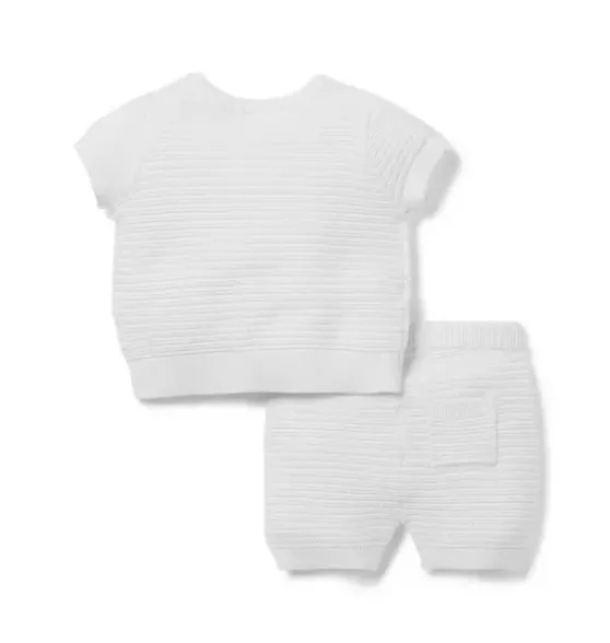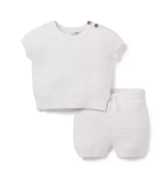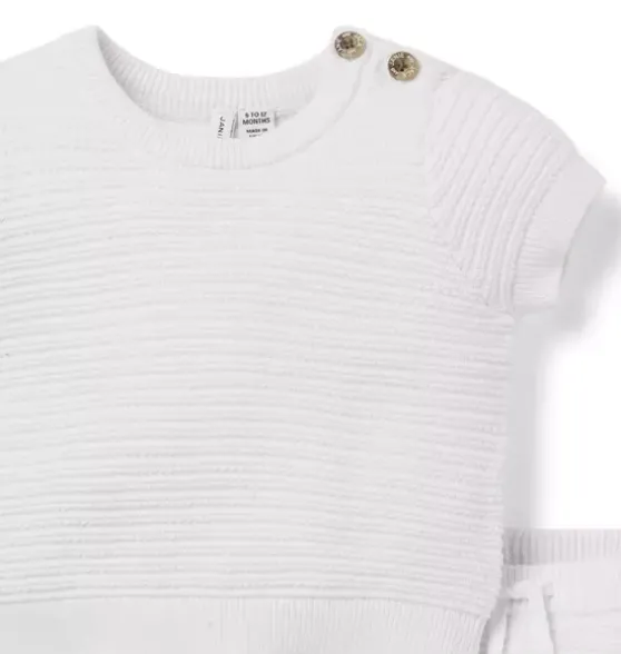 - It’s a match for first moments. Our soft sweater set features textured stripes, little back pocket and a bow detail at the waist.