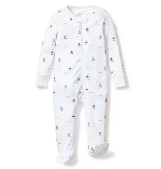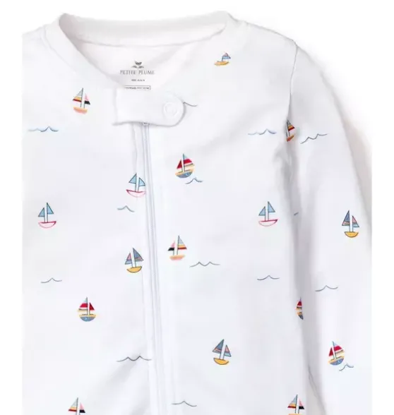 - Set sail into a sea of dreams with our Bateau print, a sophisticated yet playful pattern designed for the little mariner’s nightly voyage to the land of nod. Chic sailboats glide across a tranquil sea of soft fabric, with gentle waves and a sprinkling of golden accents.Made to hug your little one with a snug and secure fit, this playful romper is the ultimate in softness and style. The 100% Pima cotton design is comfortable, durable, and ultra-breathable, keeping your child cool in warmer weather or cozy in colder months. Vibrant colors stay true after multiple washes, so you can rest easy knowing it’ll remain a wardrobe favorite. Coordinate this set with the whole family here. For your child’s safety, this garment should fit snugly. Garment is not flame-resistant.
