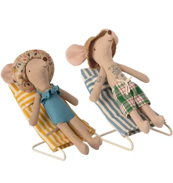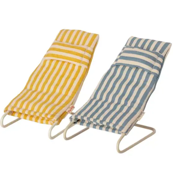 Vacation time! Bring these lovely striped beach chairs to the beach, and you will always have a perfect seat for your mice. - Dimensions: Height 2in, Width 2in, Depth 3.9in