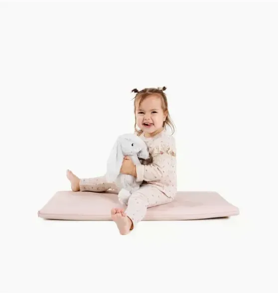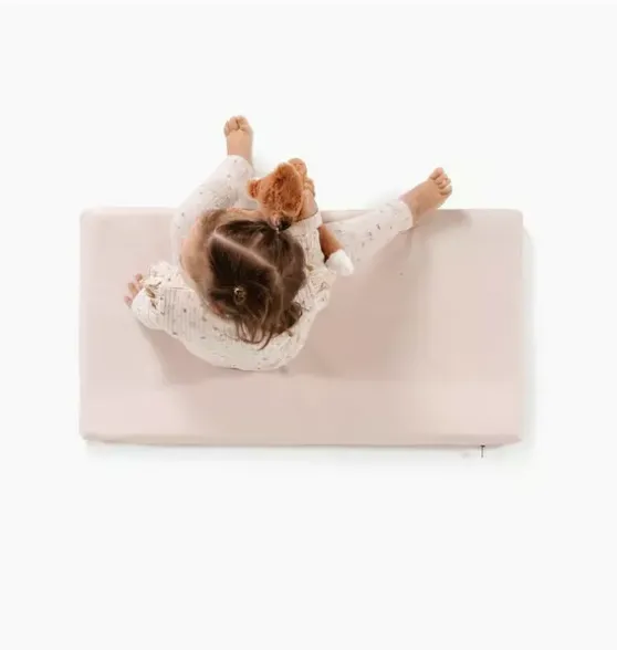 - Cushy memory foam covered in our signature wipeable faux leather. Ideal for diaper duty or a safe spot to lay their head.