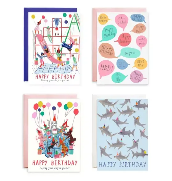 - A set of four folded A6 cards measuring 4.5″ x 6.25″