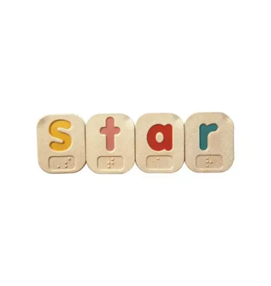 - Learn the Braille Alphabet A-Z with uppercase and lowercase letters. This set is a great addition to any classroom or educational environment. It can be enjoyed solo or in collaboration with other letters, numbers and pictures for enhanced educational play. Strengthen communication and language development. Sustainably made in Thailand using chemical-free rubberwood, organic pigments and water-based dyes.