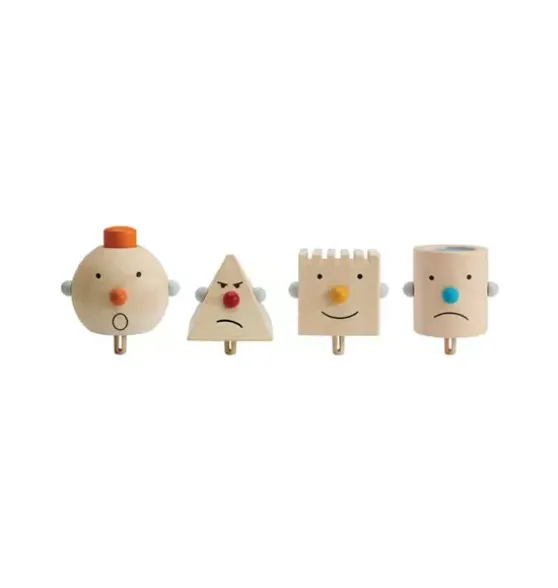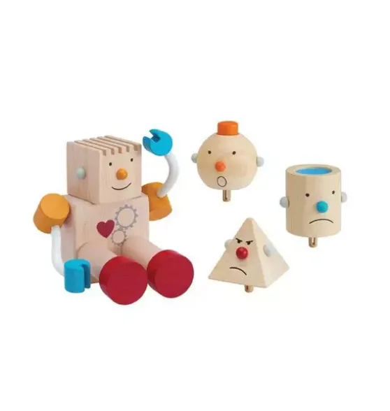 - The charming PlanToys Build-A-Robot features four interchangeable heads and unscrewable legs. This robot will help teach children how to better communicate how they are feeling and emotions through different tactile & auditory experiences. Depending on how they or the robot is feeling, they can interchange the head to match to help communicate emotion. Children can change the position of the legs to have the robot be sitting or standing.