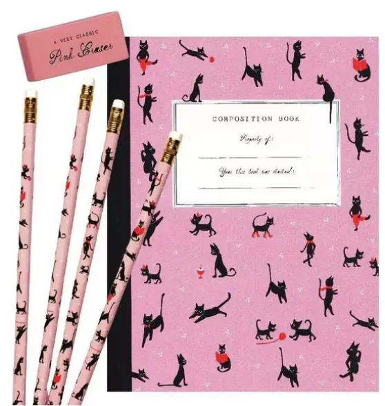 - All that you need in one gift set. With one hand-painted composition book, a nifty set of four pencils, and one classic erasure coming straight from Mr. Boddington’s studio in Brooklyn, French class will surely be a breeze.