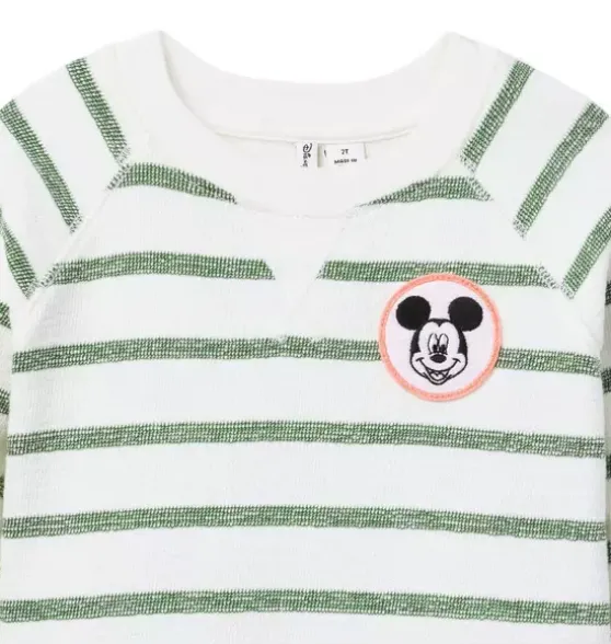 - Add this sweatshirt to your adventure lineup. Featuring a Disney Mickey Mouse patch and allover stripes, all in soft textured jersey.