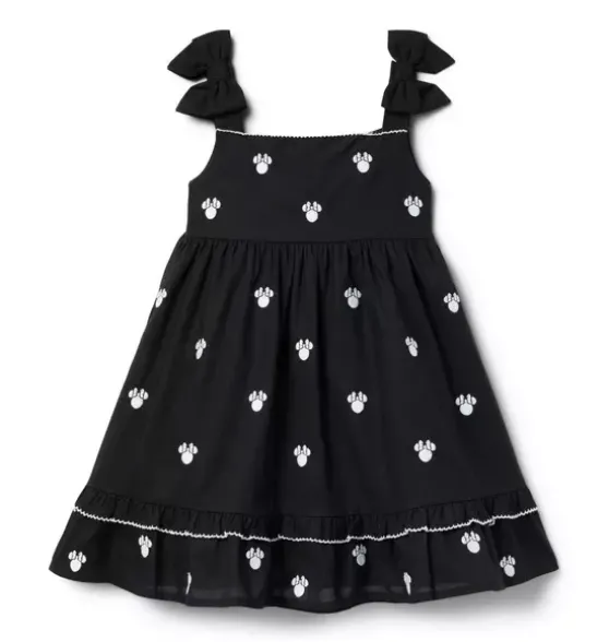 - Disney’s Minnie Mouse brings the fun to this sunny day classic. Featuring embroidered icons, bow straps and a ruffle hem with picot trim.