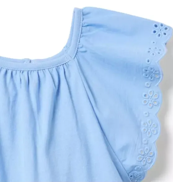 - A top favorite that goes with just about everything. In soft cotton jersey with an A-line silhouette and floral eyelet trim at the sleeves.