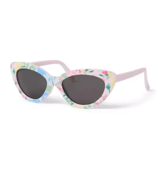 - Fresh florals are in sight with our cat eye sunglasses. Featuring tinted UV lenses with solid pink flexible rubber arms on size 0-2.