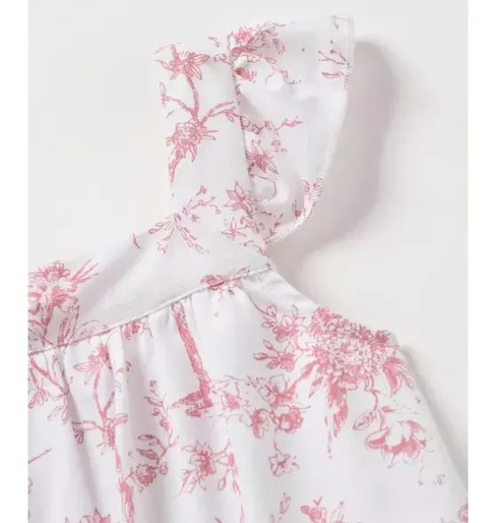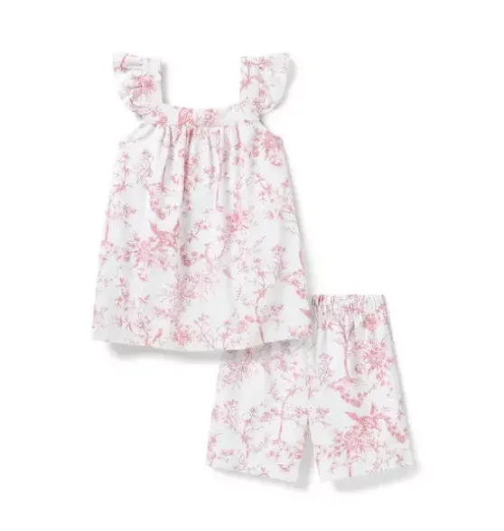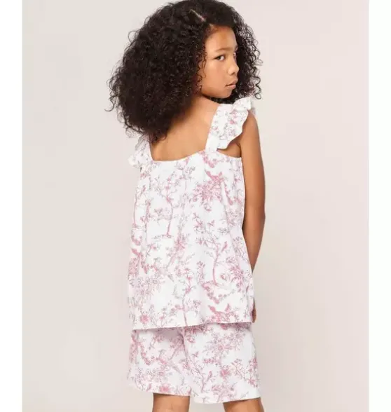 - This breezy short set has a classic relaxed silhouette, with standout touches like sweet ruffling at the shoulder. Ideal for lounging at home or spending a day in the sun.The sleepwear is made from the finest quality cotton and blended with just enough inherently flame retardant fiber to allow it to pass strict CPSC flame retardant laws without using harmful chemicals. The fabric is brushed for added softness, making the sleepwear feel absolutely luxurious, getting cozier after each wash.Your little one will be tucked in love and off to dreamland. Bonne nuit.