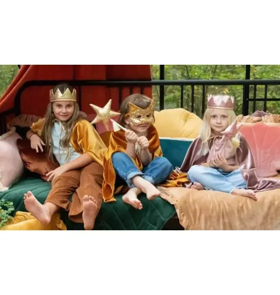 - Any imaginative child will invent endless adventures to embark upon when presented with this frisky and fun catmask! Our exquisitemasks are truly a must-have for theatre class, costume parties, fun photoshoots, fantasy playdates, or of course – Halloween.PART OF OUR MAGIC STORIES COLLECTION<span There is no way of knowing who your little one becomes today and which fantastic adventures he or she will take part in. That is exactly why you should prepare in advance for the roles of king, and queen, and dragon, and witch, and knight – to name just a few! Costumes are a must-have for theatre games, costume balls, birthday parties and numerous photo shoots. There is no land where queens, princesses and rulers can do without the most important symbol of power – the crown. Without it, it is difficult to achieve the majesty and dignity of the office, and the commands given to royal subjects simply sound less convincing. Simply magic! PART OF THE MAGIC STORIES COLLECTION Magic does not come just like that! It is obvious for all fairies and wizards. Casting magic spells requires suitable equipment such as magic capes, crowns, hoods and wands. Since every land has its own magic rules, you need to be prepared for virtually anything. Match the crown with a suitable wand to cast more powerful spells! Double-sided crown carefully made of high quality cotton covered with sequins. As it is tied in the back, it easily fits both a toddler’s and a parent’s head. Cotton fabric with sequins. Fabric: sequins and 1% OEKO-TEX® certified cotton. Washing temperature: up to 86°F. Crown length excluding ribbon: 16.5 in; height: 3 in.There is no way of knowing who your little one becomes today and which fantastic adventures he or she will take part in. That is exactly why you should prepare in advance for the roles of king, and queen, and dragon, and witch or a skeleton – to name just a few! Costumes are a must-have for halloween, theatre games, birthday parties and numerous photo shoots. PART OF THE MAGIC STORIES COLLECTION Magic does not come just like that! It is obvious for all fairies and wizards. Casting magic spells requires suitable equipment such as magic capes, crowns, hoods, wands and masks. Since every land has its own magic rules, you need to be prepared for virtually anything. Moi Mili halloween mask is made of cotton and has beautifully embroidered details designed with attention to every detail of the pattern. Fabric: 1% cotton, 1 % velour, embSize : length 6.5 in height 4.5 in Size : length 17 cm height 12 cm Washing temperature: up to 3°C. Themask is made ofsoft velour and sequins.There is no way of knowing who your little one becomes today and which fantastic adventures he or she will take part in. That is exactly why you should prepare in advance for the roles of king, and queen, and dragon, and witch or a skeleton – to name just a few! Costumes are a must-have for halloween, theatre games, birthday parties and numerous photo shoots. PART OF THE MAGIC STORIES COLLECTION Magic does not come just like that! It is obvious for all fairies and wizards. Casting magic spells requires suitable equipment such as magic capes, crowns, hoods, wands and masks. Since every land has its own magic rules, you need to be prepared for virtually anything. Moi Mili halloween mask is made of cotton and has beautifully embroidered details designed with attention to every detail of the pattern. Fabric: 1% cotton, 1 % velour, embSize : length 6.5 in height 4.5 in Size : length 17 cm height 12 cm Washing temperature: up to 3°C. Size: Length 6.5 in. Height 6 in.There is no way of knowing who your little one becomes today and which fantastic adventures he or she will take part in. That is exactly why you should prepare in advance for the roles of king, and queen, and dragon, and witch or a skeleton – to name just a few! Costumes are a must-have for halloween, theatre games, birthday parties and numerous photo shoots. PART OF THE