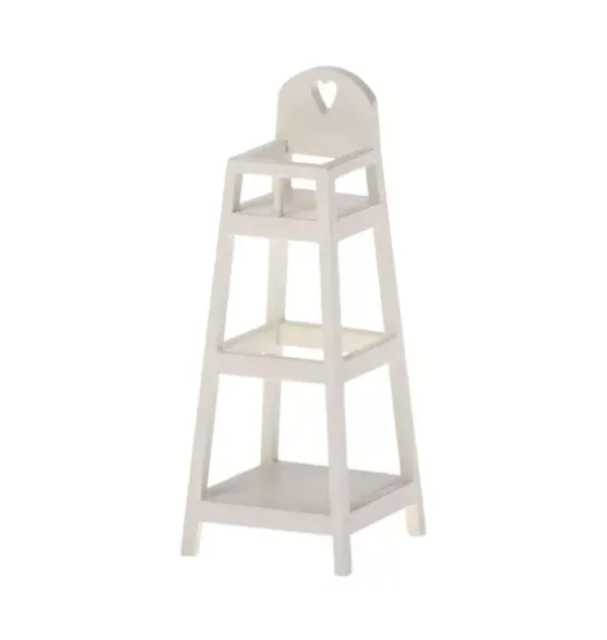 The word “My” means “tiny” in Danish, so this wooden high chair is perfect for feeding your My-sized Baby Rabbit Girl or Baby Boy or Baby Mice. The adorable baby chair has a delicate heart carved out on the back.
