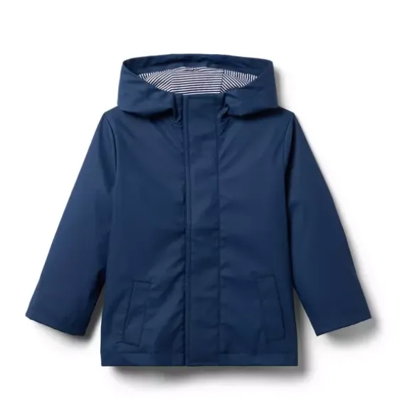 - The perfect raincoat for any fashion forecast. Featuring a hooded silhouette and soft striped jersey lining. Plus, pockets for the little things.