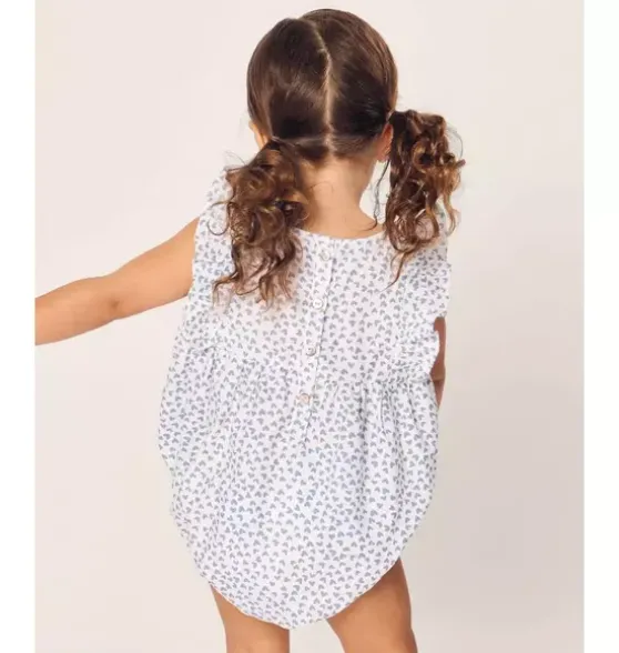 - The lovely new Bluehearts design is a minimalist’s match made in heaven. This darling romper with sweet ruffle hems and sleeves, and delicate buttons, is reminiscent of the Victorian era. The sleepwear is made from the finest quality yarn-dyed cotton and blended with just enough inherently flame retardant fiber to allow it to pass strict CPSC flame retardant laws without using harmful chemicals. The fabric is brushed for added softness, making the sleepwear feel absolutely luxurious, getting cozier after each wash.