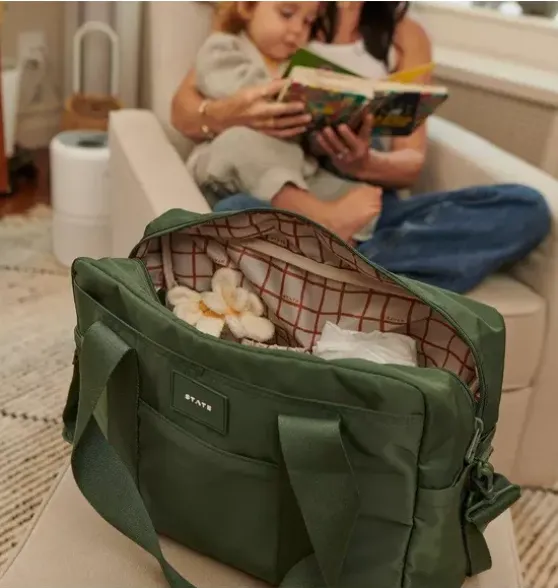 - The STATE Bags Jordan Diaper Tote is a stylish and functional essential for modern parents. Designed with multiple compartments for easy organization, insulated bottle pockets, and a wipeable changing pad, it keeps everything you need within reach. With a sleek design and comfortable carry options, it’s the perfect blend of fashion and practicality for life on the go.