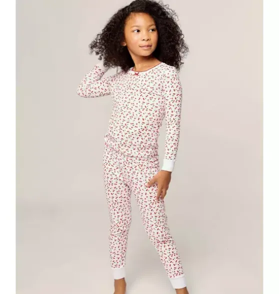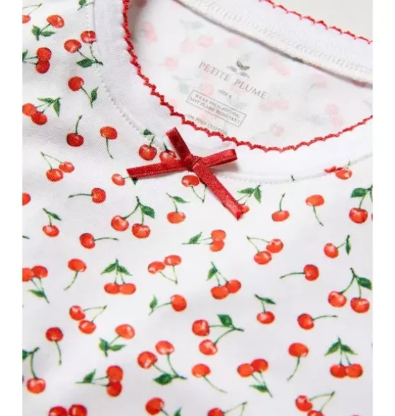 - Put a summery spin on mom-and-me dressing with this classic cherry print, just in time for sun and fun. Our 100% Pima Cotton Long Sleeve Top and Pant Set is designed to ensure a secure and snug fit, allowing freedom of movement for active littles while providing a stylish silhouette for cooler months. Designed to coordinate with the whole family , this set offers superior comfort, durability with serious coordinated style points. The high-quality Pima Cotton retains its softness, shape, and vibrant colors even after multiple washes, ensuring it remains a favorite in your child’s wardrobe. In our luxurious sleepwear, your little one will be tucked in love and off to dreamland. Bonne nuit.**For your Child’s safety, this garment should fit snugly, garment is not flame resistant**
