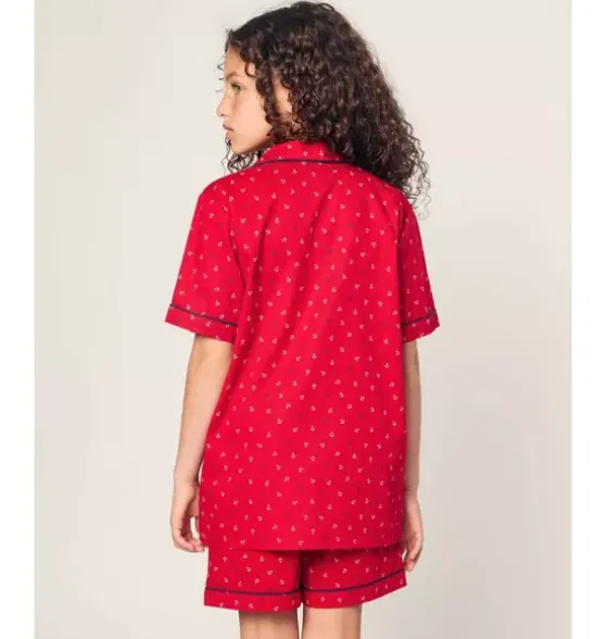 - The new Anchors Away print adds an extra-summery touch to classic red pajamas. Perfect for backyard barbecues and breezy boat rides. This Classic Short Set is accented with, contrast piping and finished with pearl buttons.The sleepwear is made from the finest quality cotton and blended with just enough inherently flame retardant fiber to allow it to pass strict CPSC flame retardant laws without using harmful chemicals. The fabric is brushed for added softness, making the sleepwear feel absolutely luxurious, getting cozier after each wash.In our luxurious sleepwear, your little one will be tucked in love and off to dreamland. Bonne nuit.