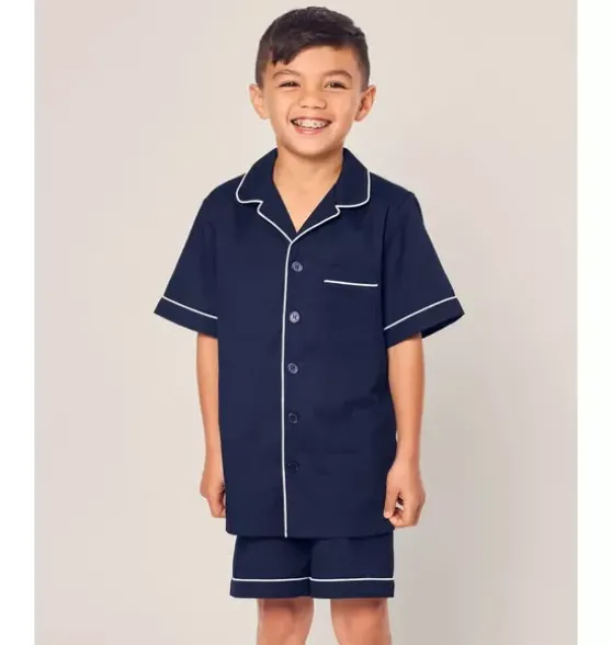- This Classic Short Set is accented with contrast piping and finished with pearl buttons.The sleepwear is made from the finest quality cotton and blended with just enough inherently flame retardant fiber to allow it to pass strict CPSC flame retardant laws without using harmful chemicals. The fabric is brushed for added softness, making the sleepwear feel absolutely luxurious, getting cozier after each wash.In our luxurious sleepwear, your little one will be tucked in love and off to dreamland. Bonne nuit.
