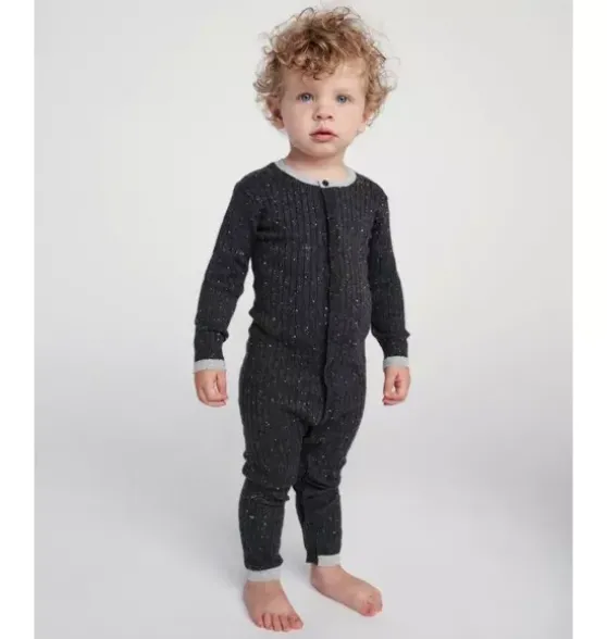 - HUG ME COMFYWEARThe reinvented retro ribbed knitCrafted from responsibly sourced BCI cotton, the retro-inspired Long Sleeve Jumpsuit features an ultra-soft and breathable speckled ribbed knit for the comfiest wear. Find ease with the buttons down the middle and at the leg opening for quick access to baby’s diaper. The open foot design allows for toddlers to take their first steps in their Hug Me piece. Perfect for lounging and sleeping!Make it a set with the matching Hug Me Beanie, where every stitch is a HUG for your little ones!