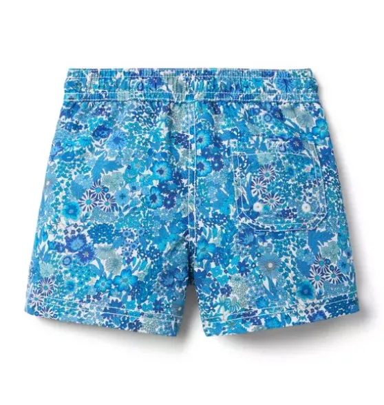 - Made with love. Made with Liberty Fabric. Our swim trunk gets a dose of British charm with an eclectic animal print from Liberty London. Detailed with a touch-close back pocket and embroidered eyelets to let water drain out. Responsibly made with recycled fabric.