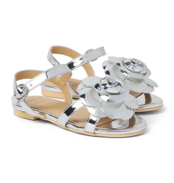 - Put a little spring in their step with these metallic sandals detailed with a blooming flower.