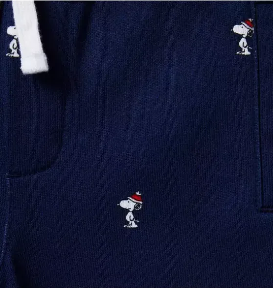 - For cozyy holiday moments, our limited edition PEANUTS jogger in soft French terry is an instant love. With a festive Snoopy print, striped details and pockets for the little things.