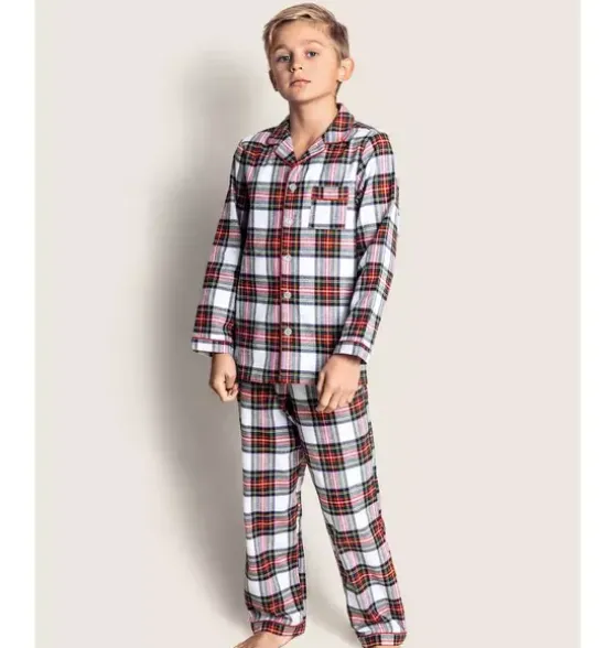 - They’ll be tucked in love with this pajama set from our friends at Petite Plume. In an iconic tartan and brushed for added softness that gets cozier after each wash.