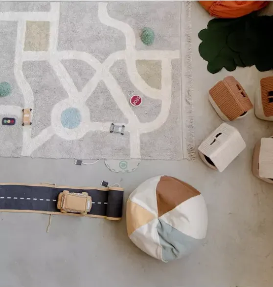 - Interactive: Our interactive products encourage children’s creativity & play-time while learning and stimulating their senses. You can find in our catalogue rugs, poufs , baskets, toys and interactive textile books!