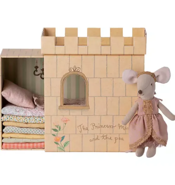 A classic Maileg item. The famous fairytale “The Princess and the Pea” is the inspiration behind this playset. The set includes a castle with mattresses, a pea and a princess mouse. Combine this set with other mice and accessories for more play.
