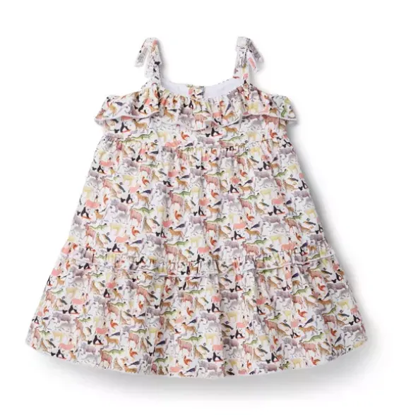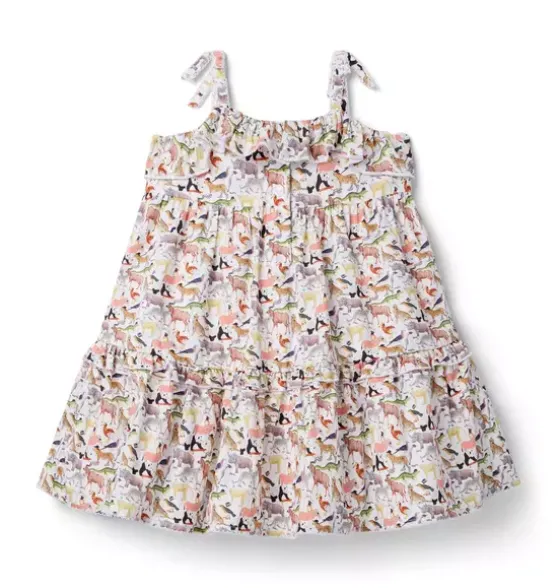 - Made with love. Made with Liberty Fabric. This head-turning dress gets a dose of British charm with an eclectic animal print from Liberty London. Bow straps, picot trim and a tiered hem make it even more special.