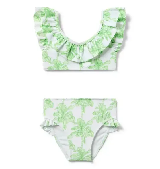 - Meet us under the palm trees with our vacation-ready swimsuit. Featuring ruffle details and UPF 50+ sun protection to keep them stylishly safe. Responsibly made with recycled polyester fabric.