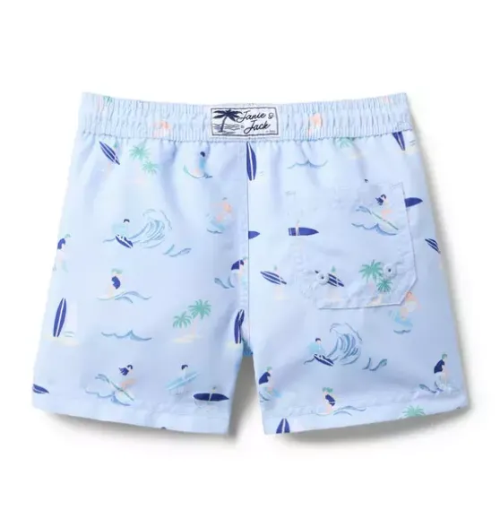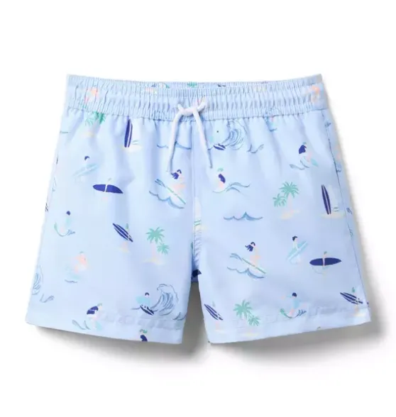 - For the beach or the pool, our surfer swim trunk is a swell choice. With UPF 50+ sun protection, a touch-close back pocket and embroidered eyelets to let water drain out. Responsibly made with recycled fabric.