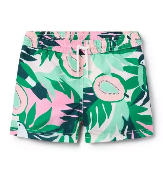 - Trending tropical toucans for our must-sea swim trunk. With UPF 50+ sun protection, a touch-close back pocket and embroidered eyelets to let water drain out. Responsibly made with recycled fabric.