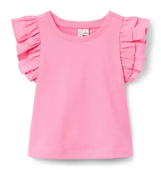 - Ruffles and the perfect shade of pink? At the top of our list. This soft cotton jersey top features double ruffle sleeves for extra frills. Wear it your way.