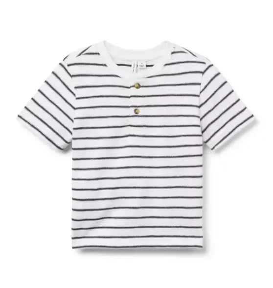 - A henley tee we love in a trending textured knit. With allover stripes, a contrast collar and ribbed details too.