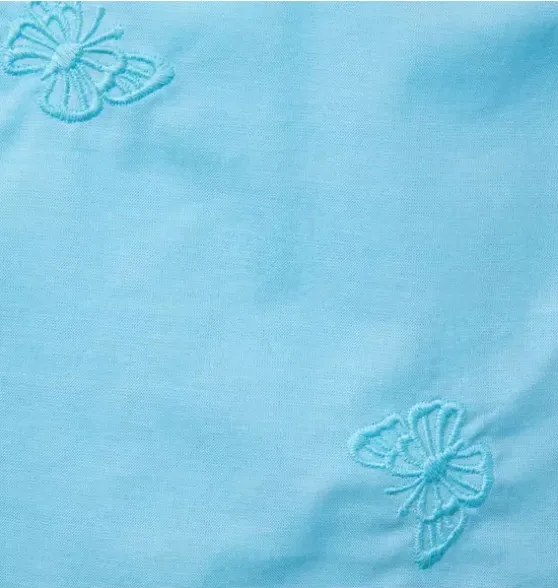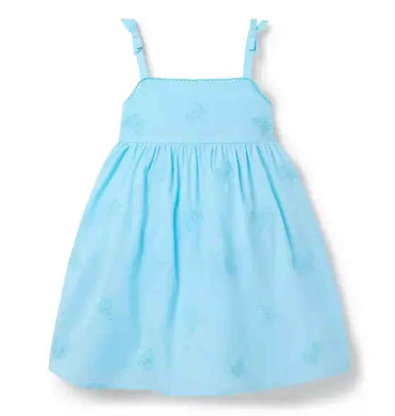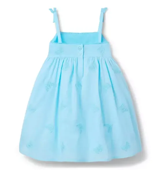 - Dreamy details make this pure cotton dress an instant favorite. With allover embroidered butterflies, picot trim and bows at the straps.