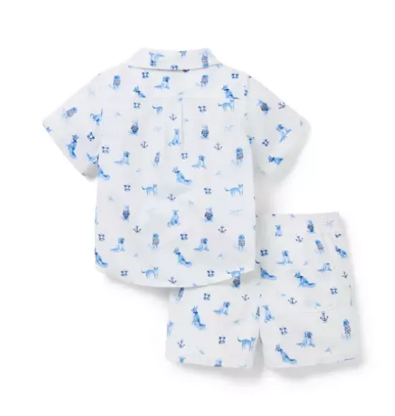 - Our breezy cotton short set is the perfect match for baby’s sunny first moments. In a nautical-inspired dog print with a little chest pocket, just because.