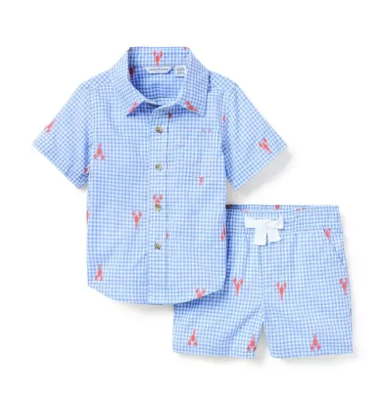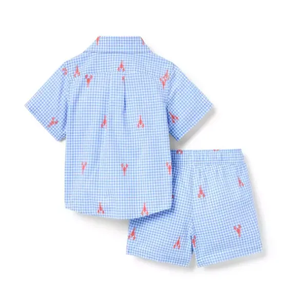 - By land or by sea, our cotton short set is the perfect match for sunny first moments. In allover gingham with lobster details and a little chest pocket, just because.