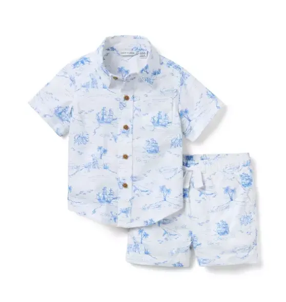 - Our breezy cotton short set is the perfect match for baby’s sunny first moments. Featuring allover nautical toile plus a little chest pocket, just because.