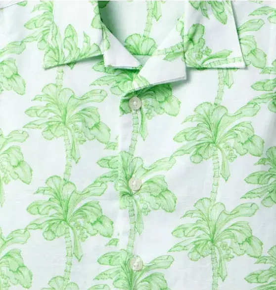 - Designed in a breezy linen-cotton blend, our cabana shirt is an instant vacation vibe. Featuring an allover palm tree print, relaxed collar and straight hem silhouette. Just add a sunny day.